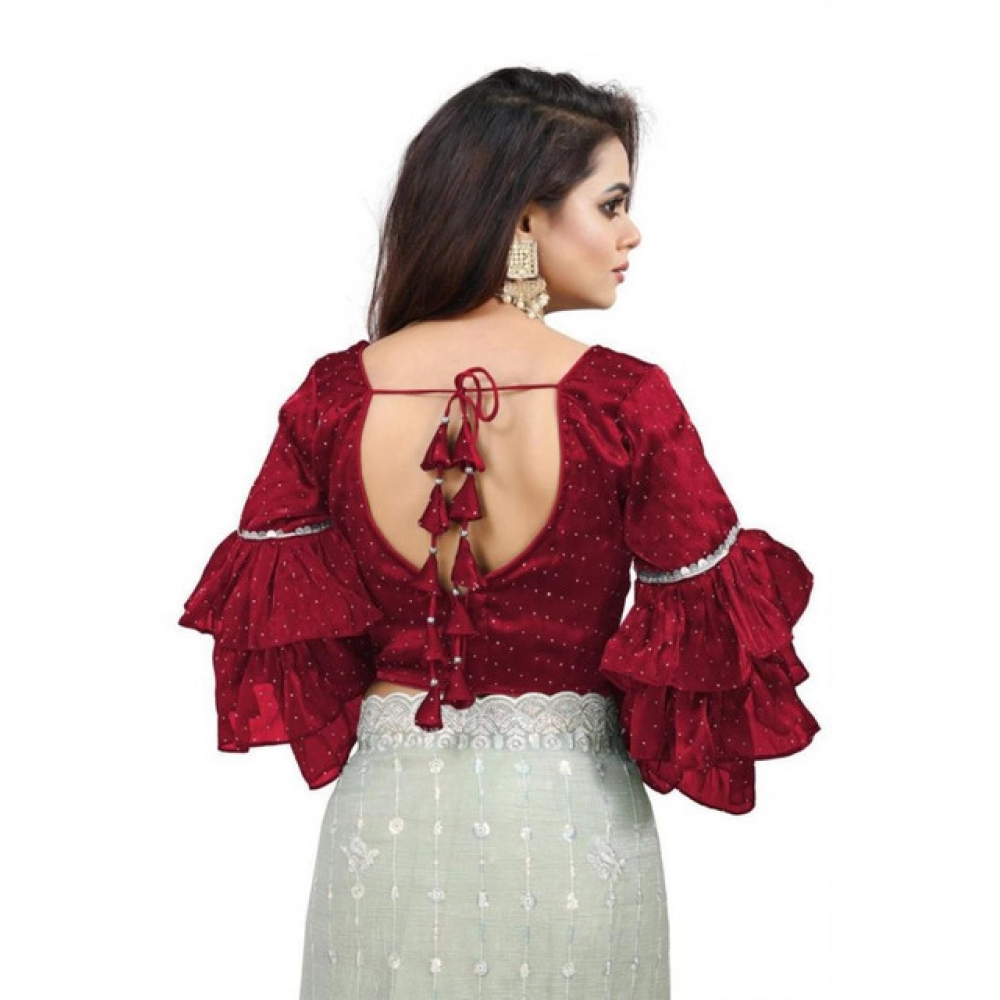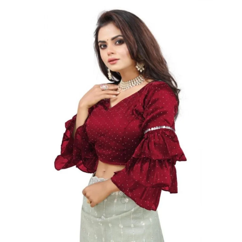 Women's Organza Solid V Neck Layered Ruffle Sleeve Readymade Blouse (Maroon Free Size , up to 38鈥?0 Bust)-PID65854