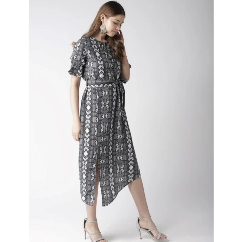 Women’s Polyester Animal Print Short Sleeve Knee-Length Dress