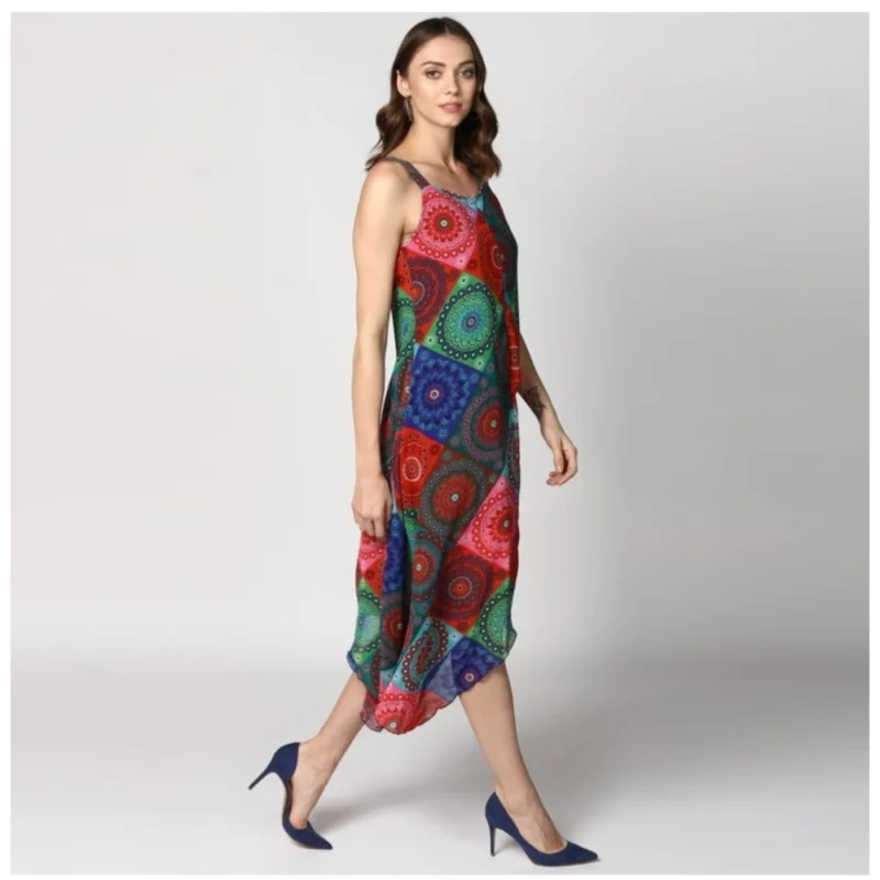 Women’s Polyester Asymmetrical Shoulder Straps Knee-Length Dress