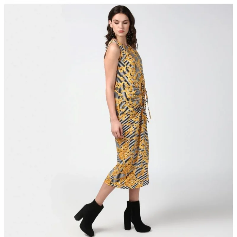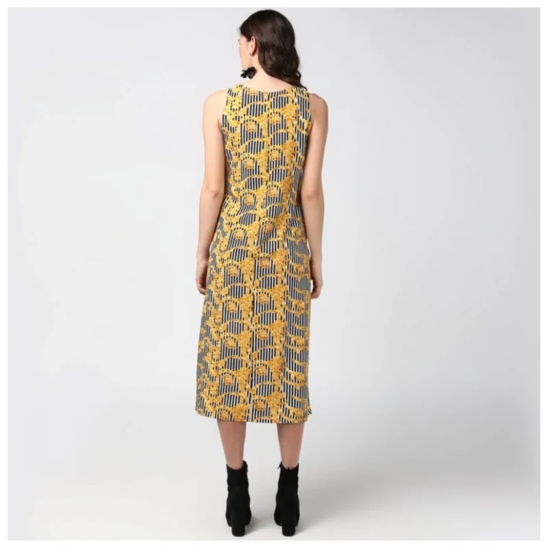 Women’s Polyester Chain Print Sleeveless Below Knee Dress