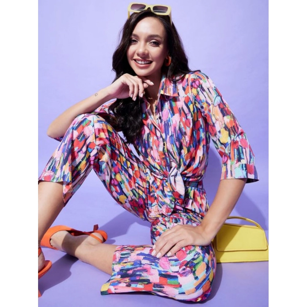 Women’s Polyester Floral 3-4th Sleeve Co-Ord Set