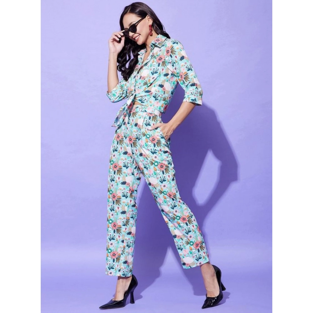 Women's Polyester Floral 3-4th Sleeve Co-Ord Set (Multicolor)