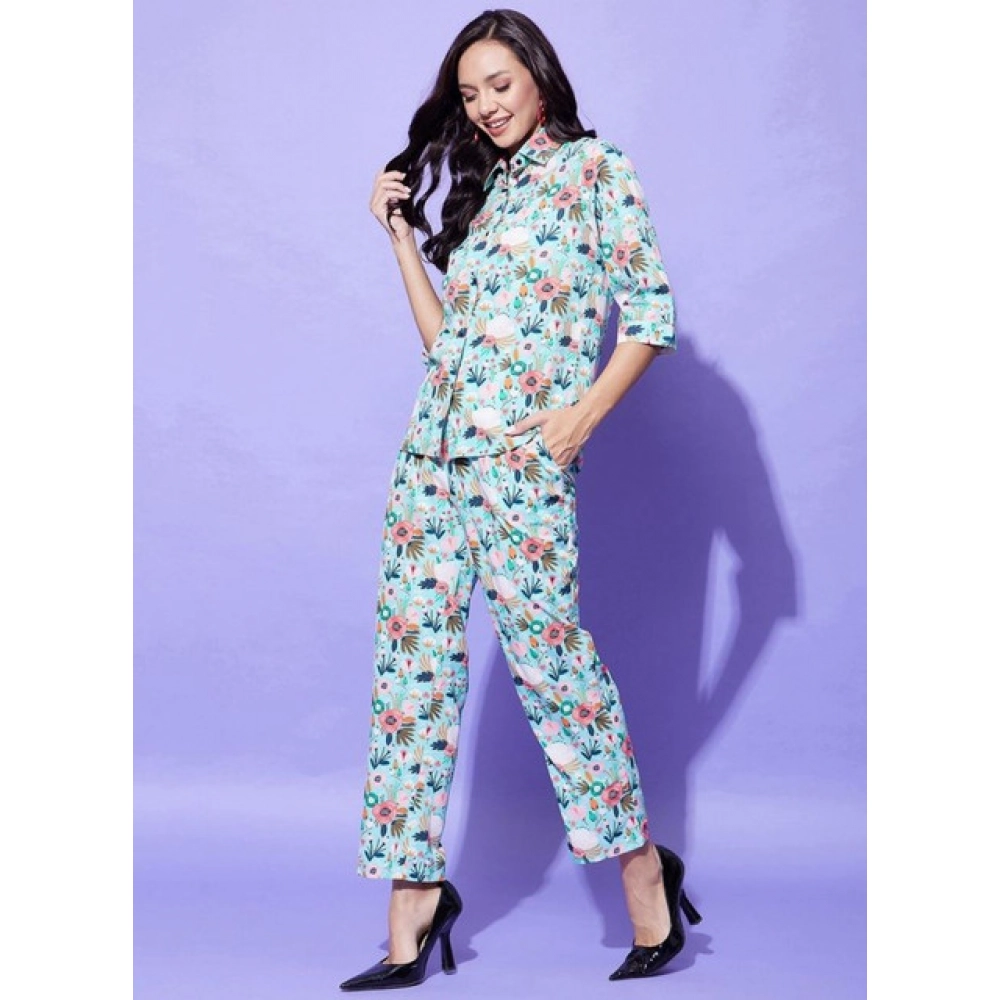 Women’s Polyester Floral 3-4th Sleeve Co-Ord Set