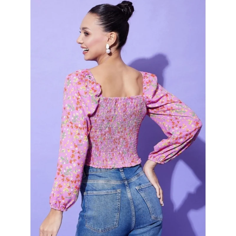 Women’s Polyester Floral Long Sleeves Top (Multicolor)