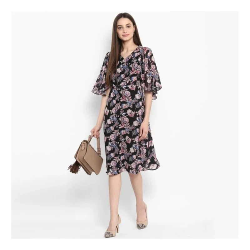 Women’s Polyester Floral Short Sleeve Knee-Length Dress