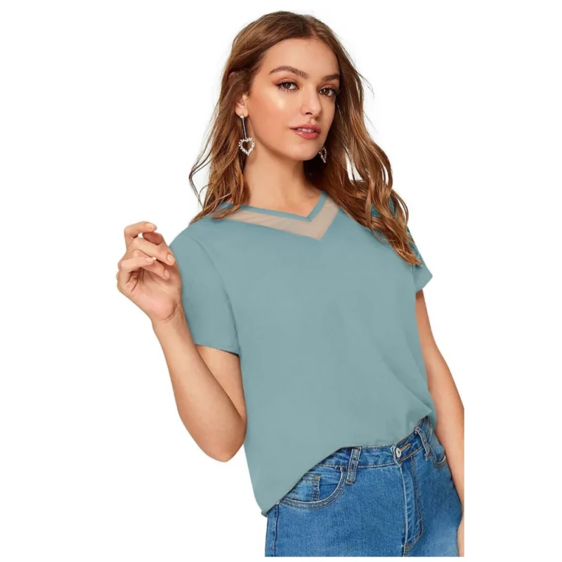 Women’s Polyester, Knitting Western Wear T-Shirt (Pista)