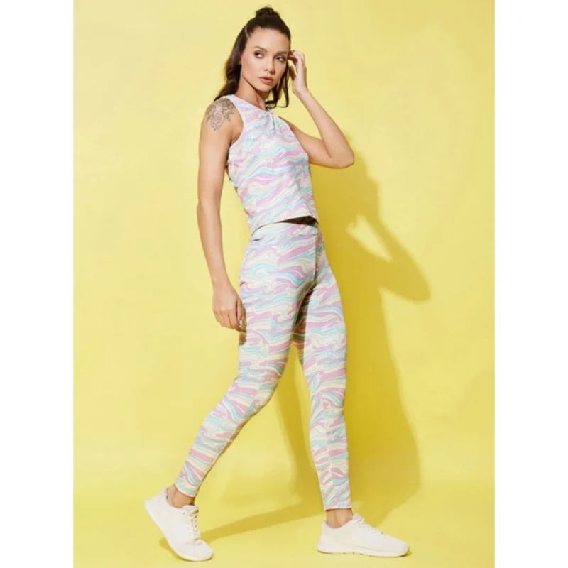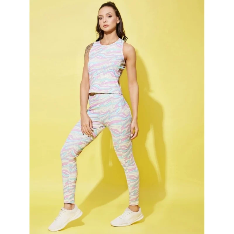 Women's Polyester Lycra Printed Sleeveless Active Wear (Multicolor)