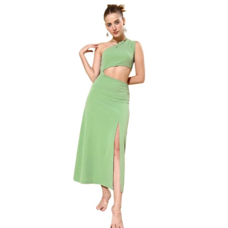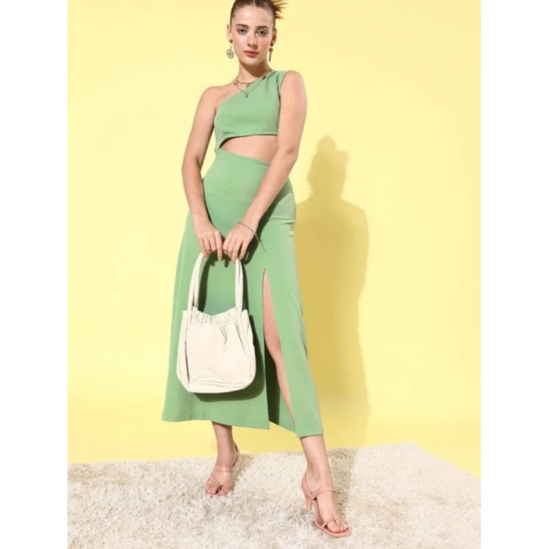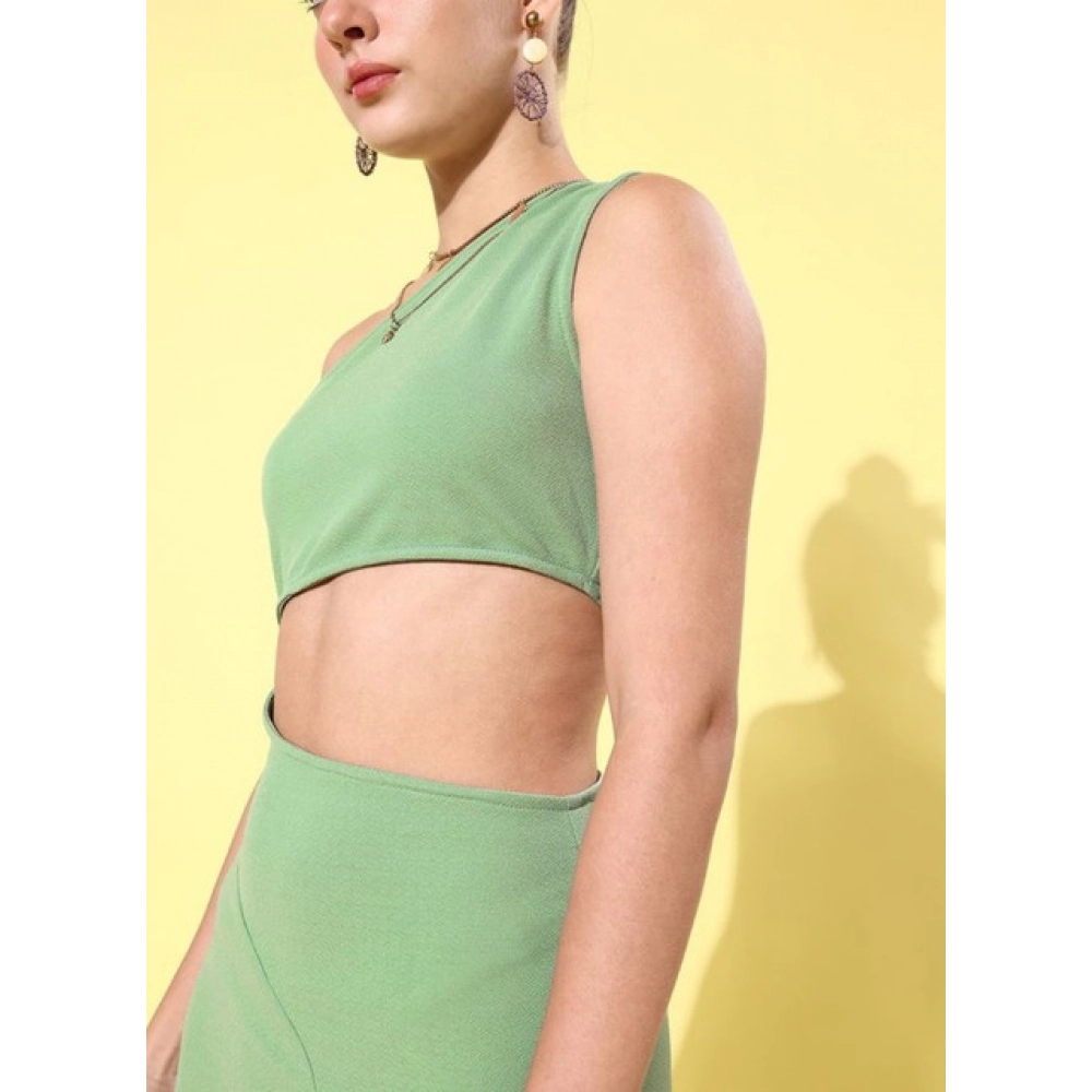 Women’s Polyester Lycra Solid Sleeveless Dress (Green)