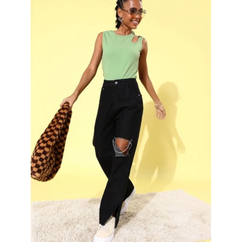 Women's Polyester Lycra Solid Sleeveless Top (Green)