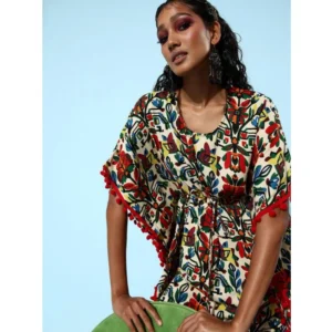 Women’s Polyester Moss Printed Round Neck Kaftan Sleeve Dress