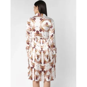 Women’s Polyester Pleated Collar Neck Long Sleeves Dress