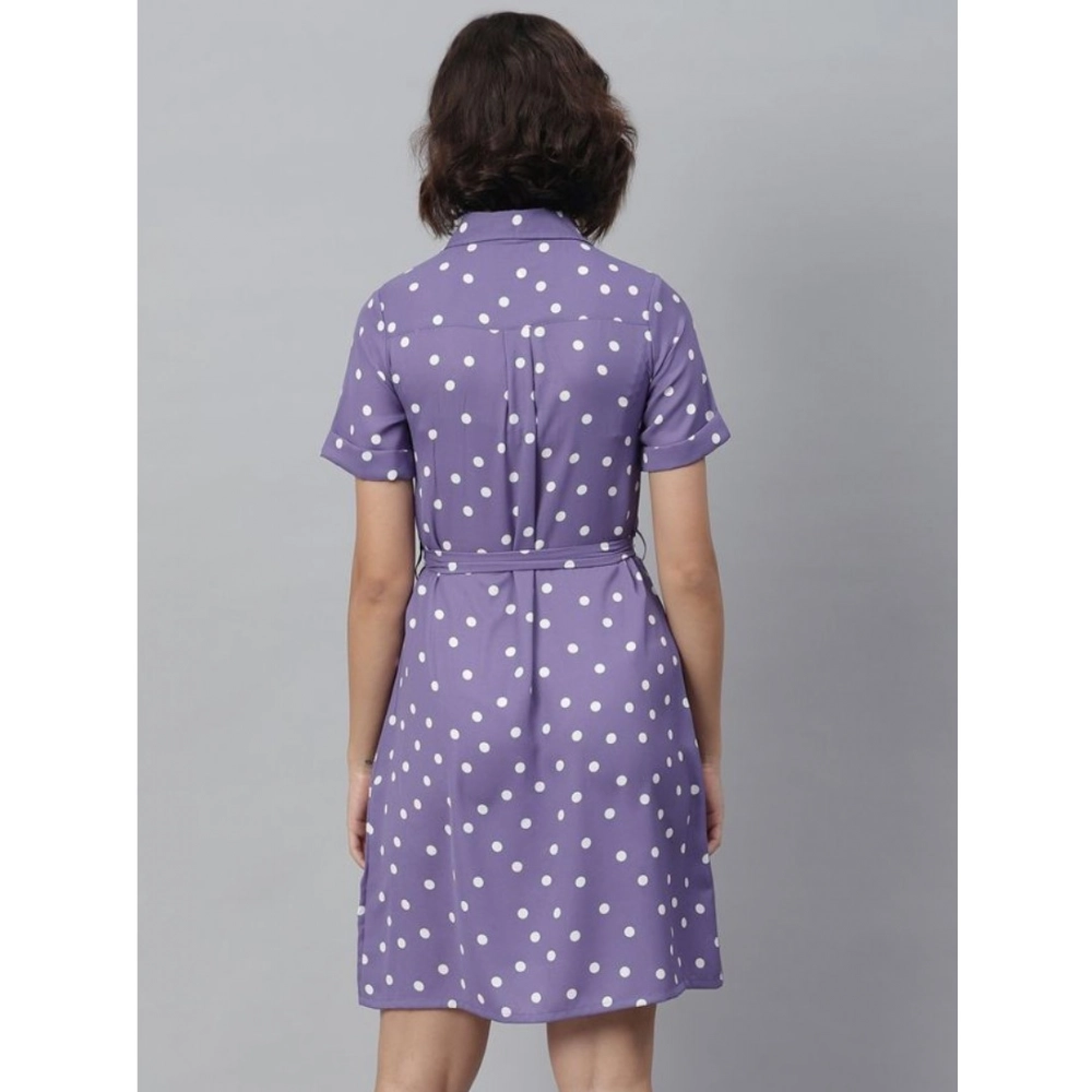 Women’s Polyester Polka Collar Neck Short Sleeve Dress
