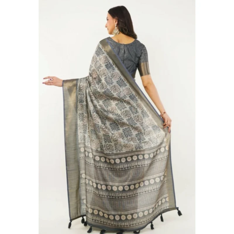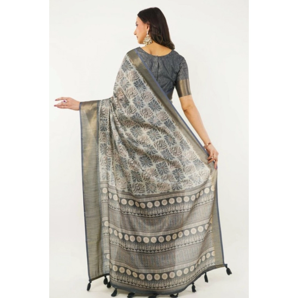 Women's Polyester Printed Saree With Unstitched Blouse 5.5 Mtr?(Grey)