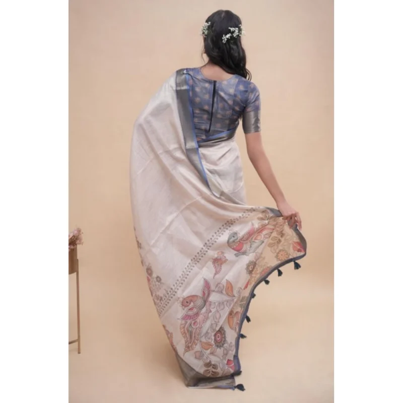 Women’s Polyester Printed Saree With Unstitched Blouse 5.5 Mtr?(Off-White)