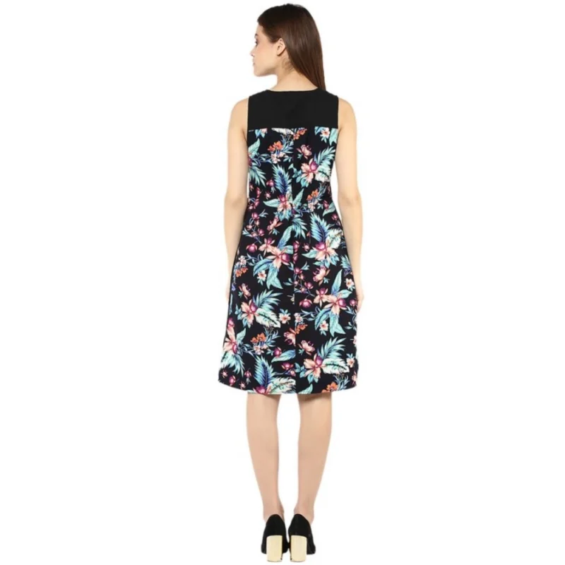 Women’s Polyester Printed Sleeveless Above Knee Dress (Black – Multicolor)
