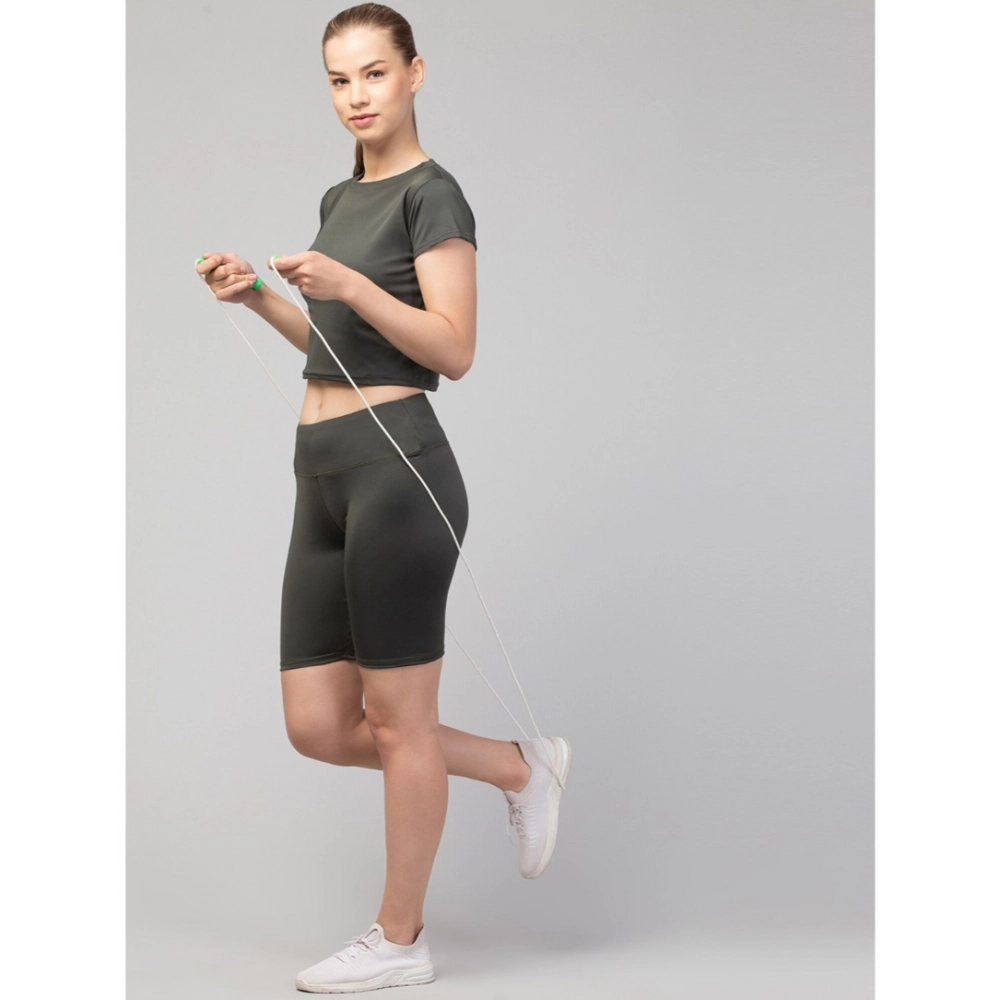 Women’s Polyester Solid Above Knee High-Rise Shorts