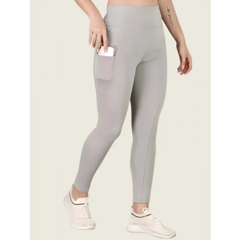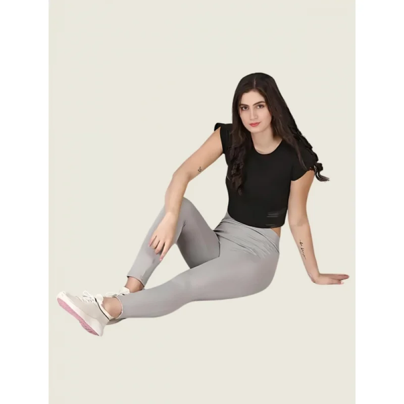 Women’s Polyester Solid Ankle length High Waisted Tights (Grey)