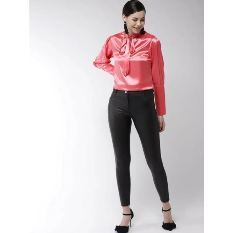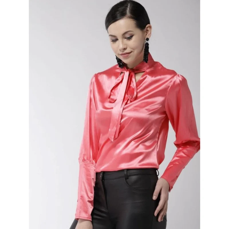 Women’s Polyester Solid Long Sleeves Top (Coral)