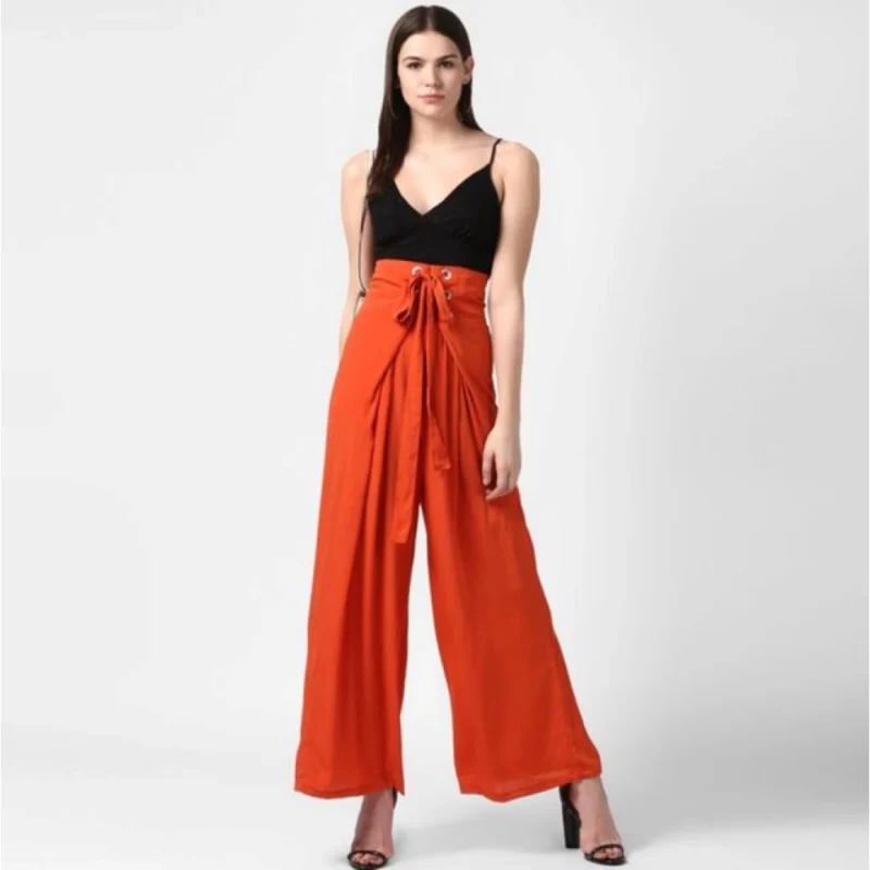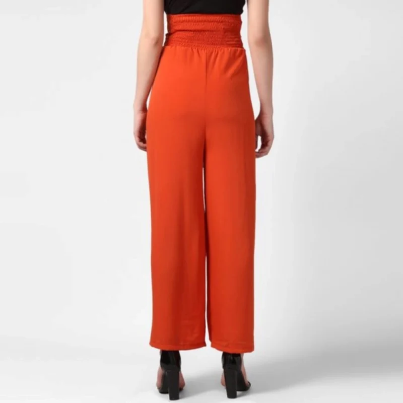Women’s Polyester Solid Smocked Trousers (Orange)
