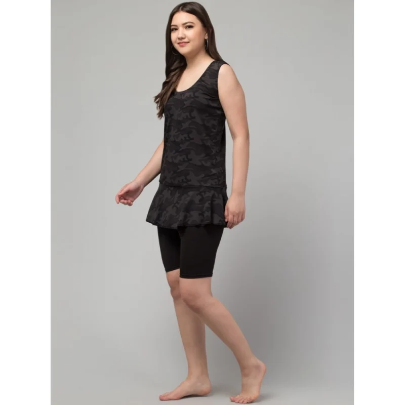 Women’s Polyester Spandex Printed Slip On Round Neck Swimsuit Set