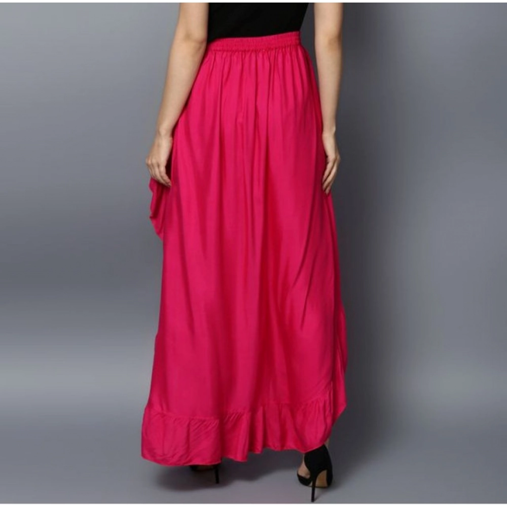 Women’s Rayon Ruffled Elasticated Skirt (Pink)