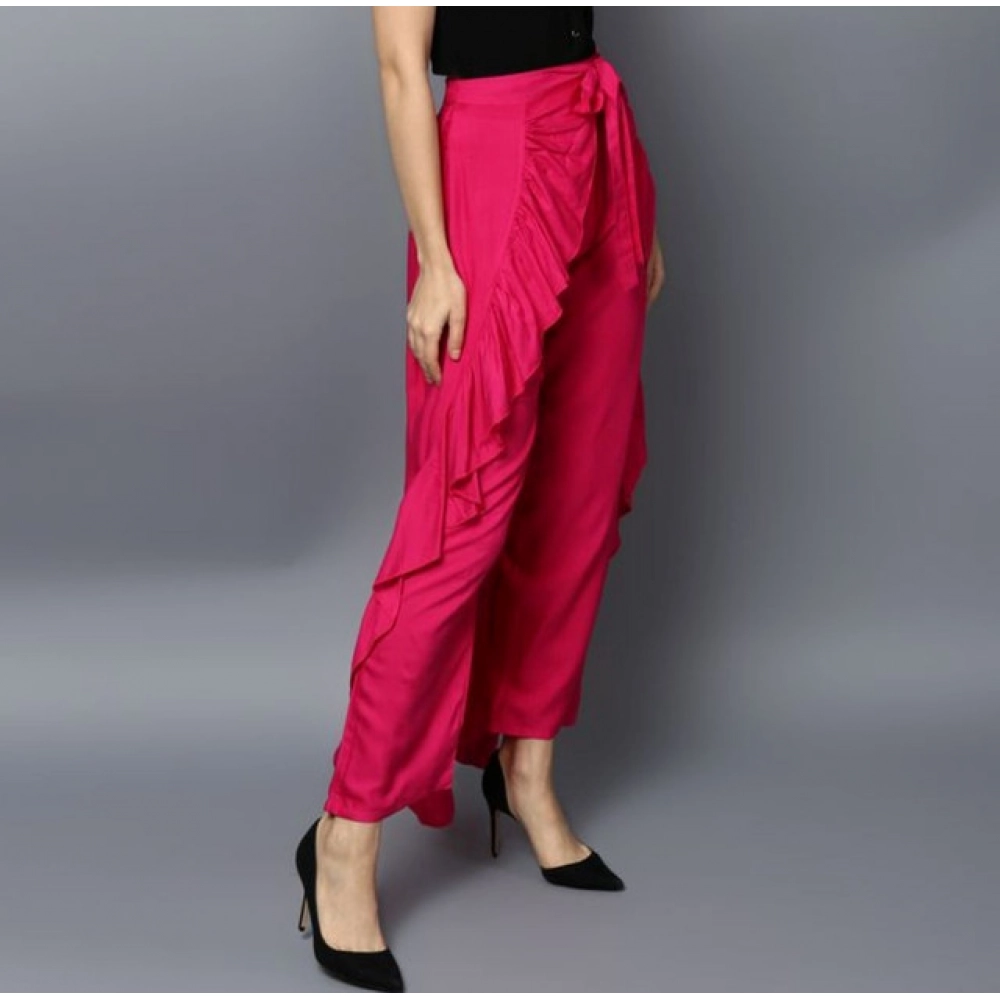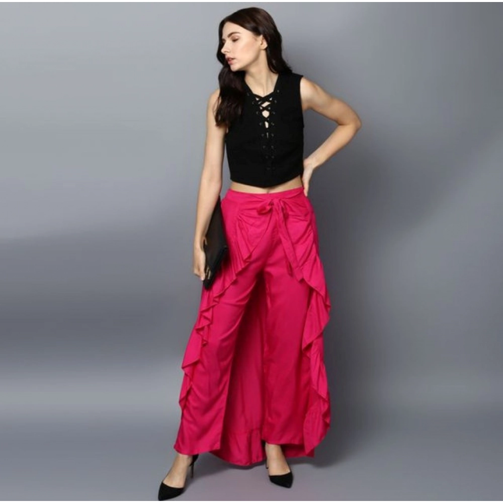 Women's Rayon Ruffled Elasticated Skirt (Pink)