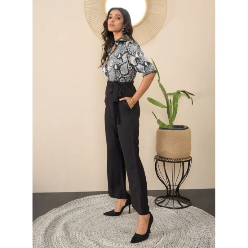 Women’s Satin And Polyester Floral Half Sleeves Jumpsuit