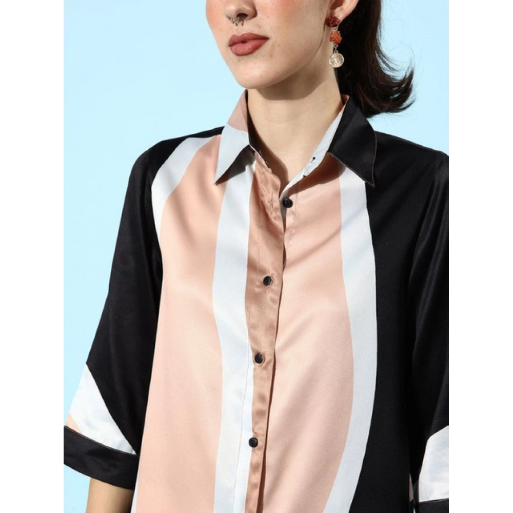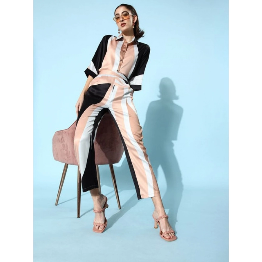 Women’s Satin Colour Block Long Sleeves Co-Ord Set