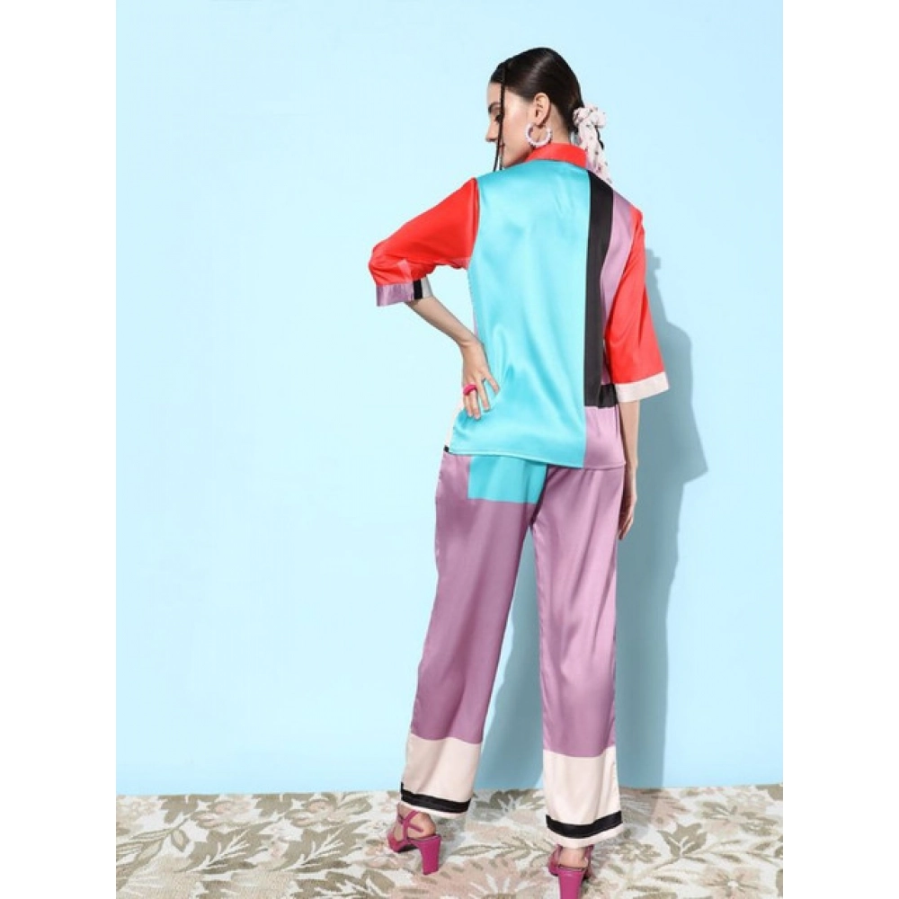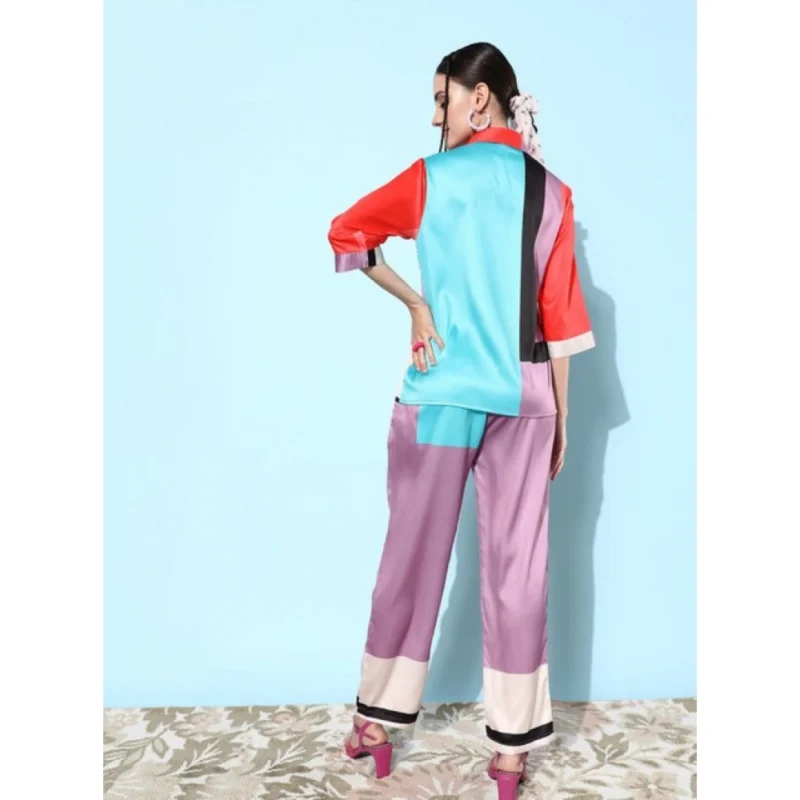 Women’s Satin Colour Block Long Sleeves Co-Ord Set