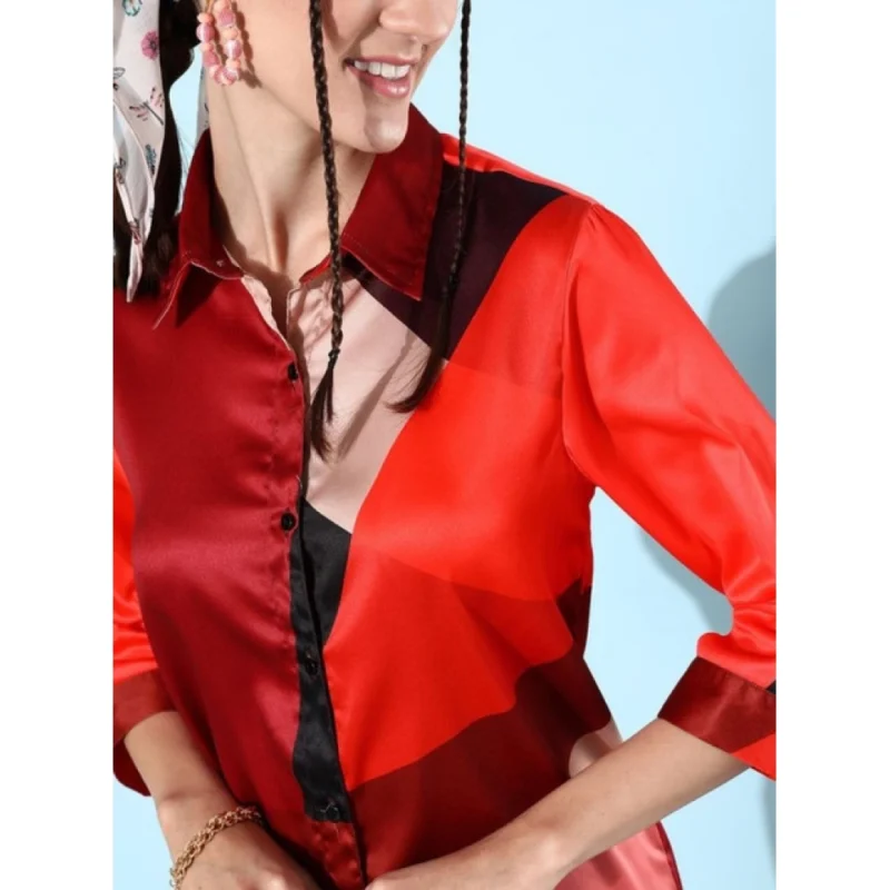 Women's Satin Colour Block Long Sleeves Co-Ord Set (Multicolor)