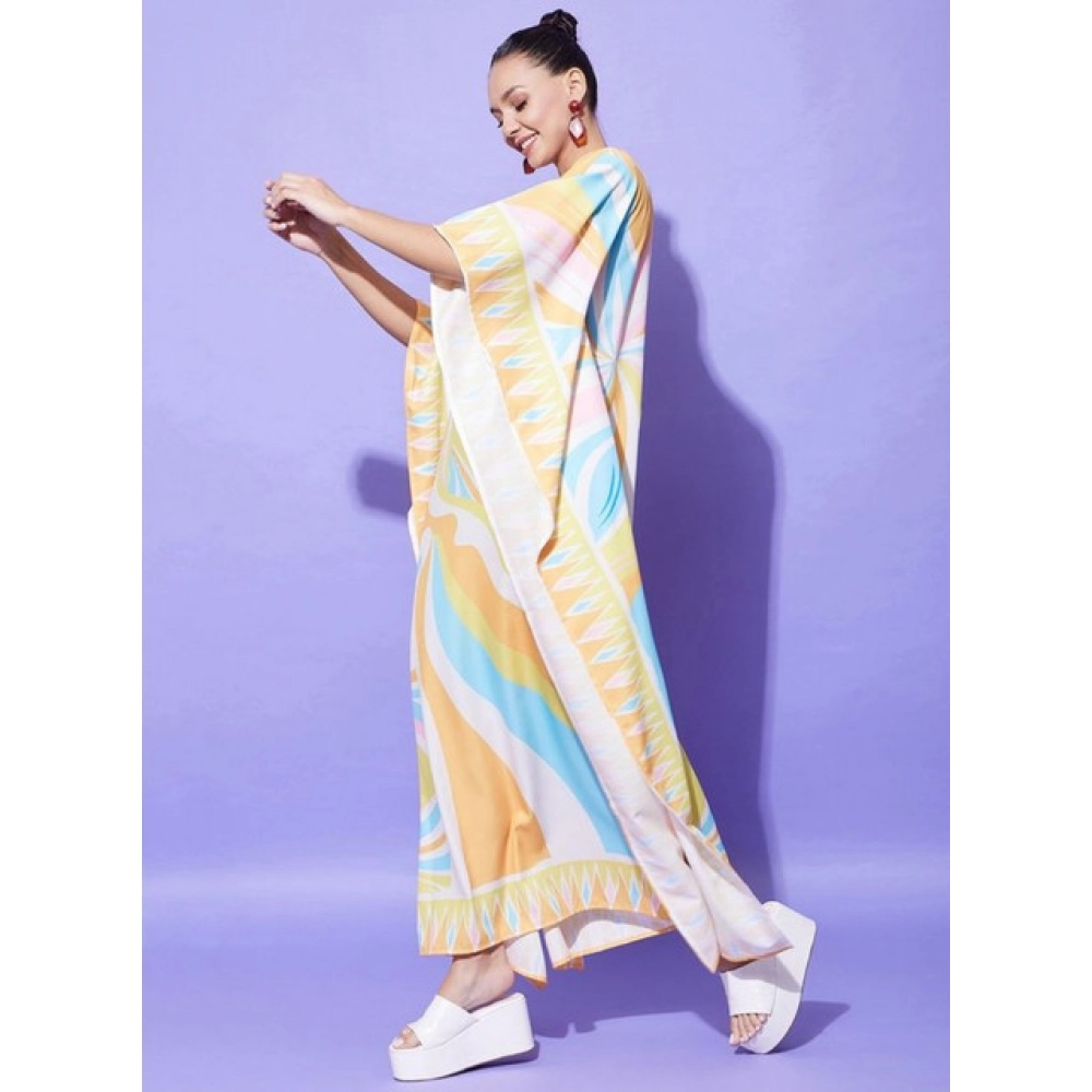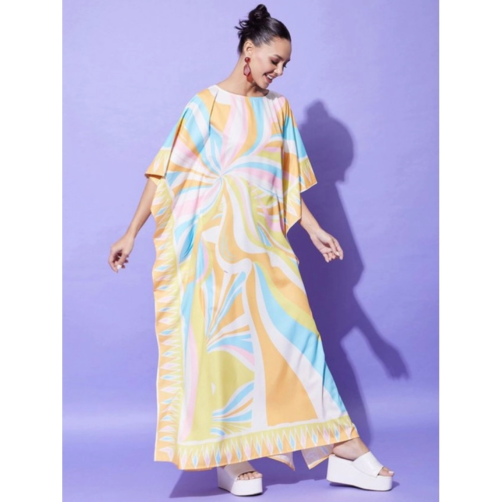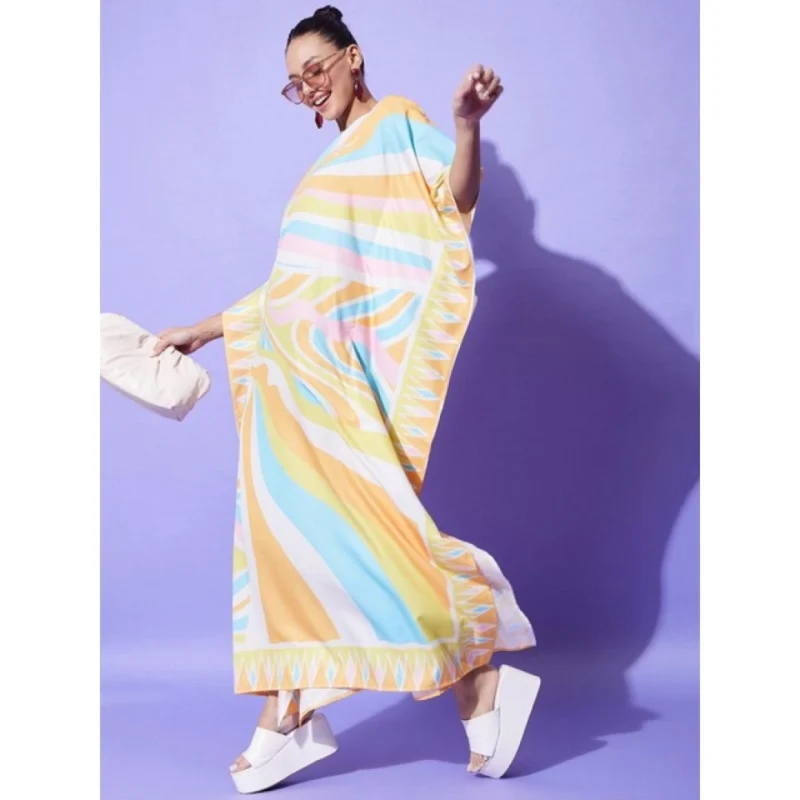 Women’s Satin Colour Blocking Kaftan Dress (Multicolor)