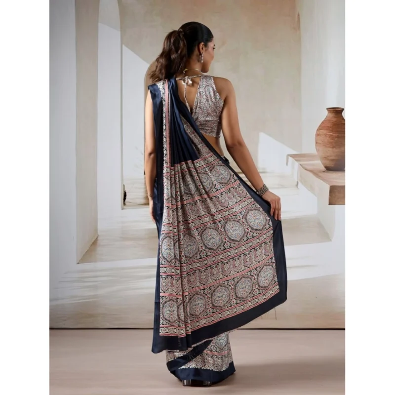 Women’s Satin Crepe Printed Saree With Unstitched Blouse 5.5Mtr