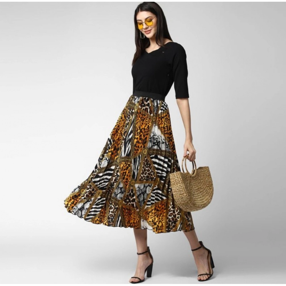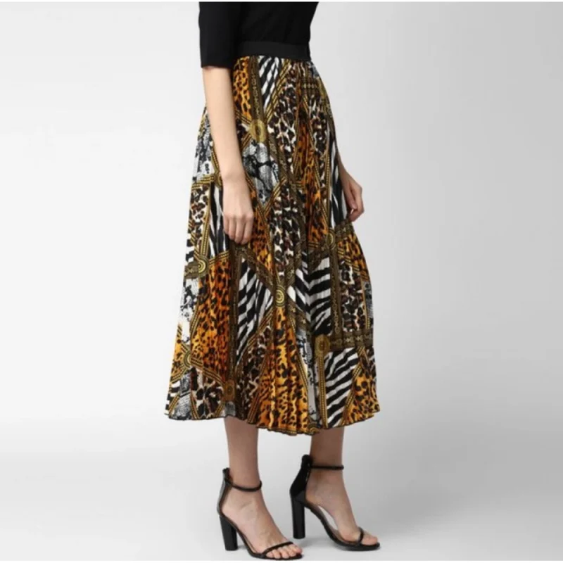 Women's Satin Pleated Elasticated Skirt (Multicolor)