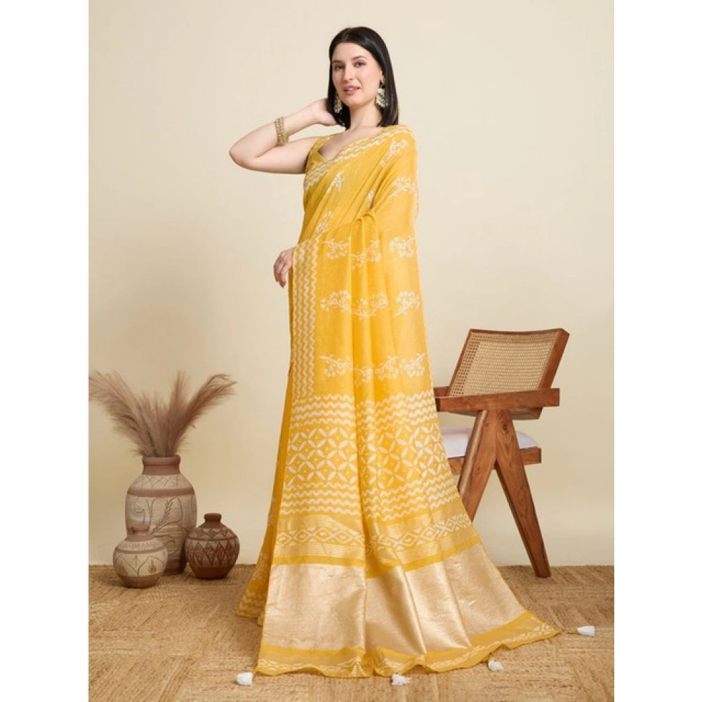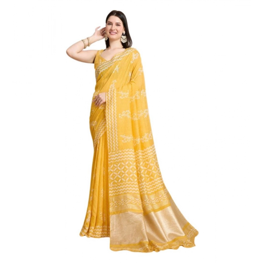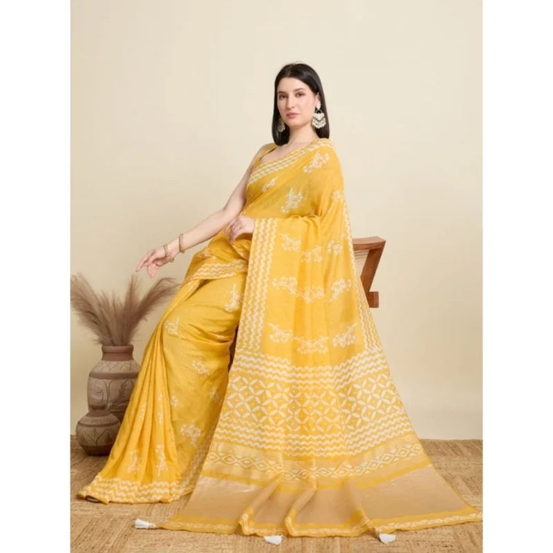 Women’s Semi Cotton Printed Saree With Unstitched Blouse 5.5Mtr