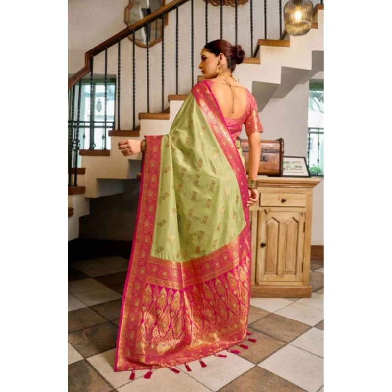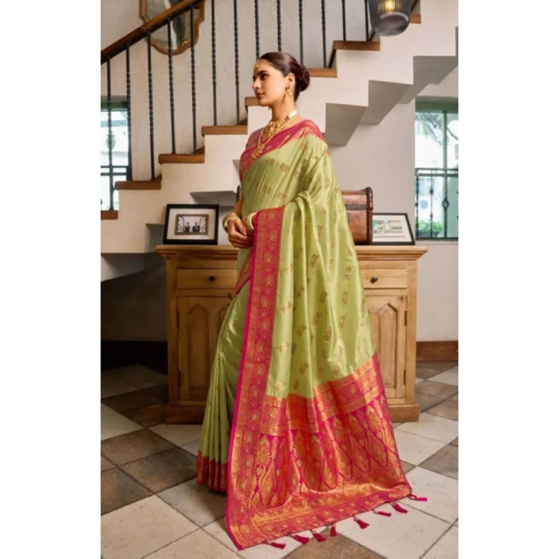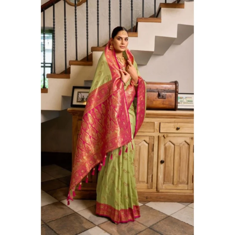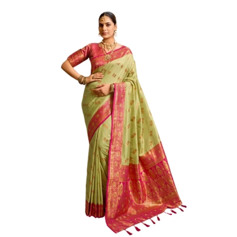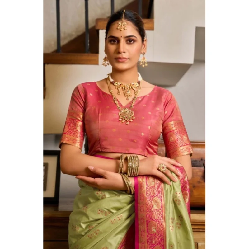 Women’s Silk Blend Booti Work Ready to wear Saree With Unstitched Blouse 5.5Mtr
