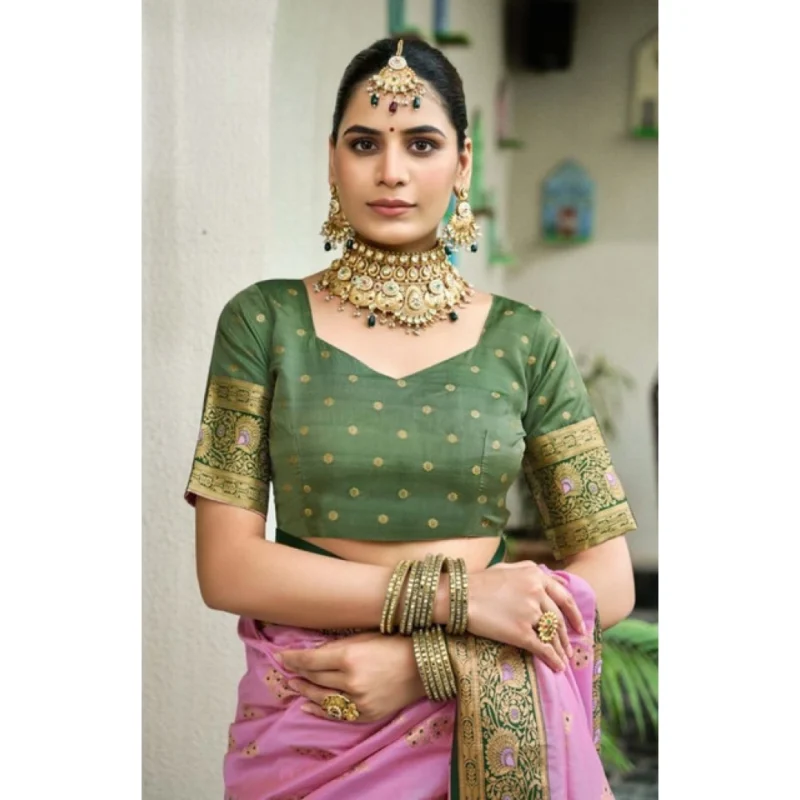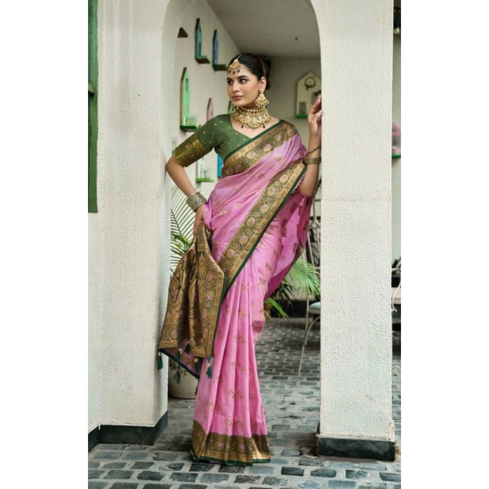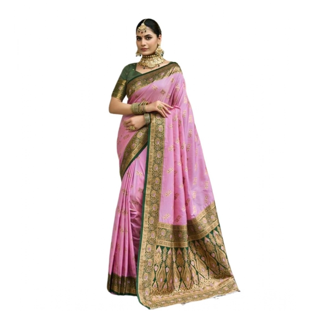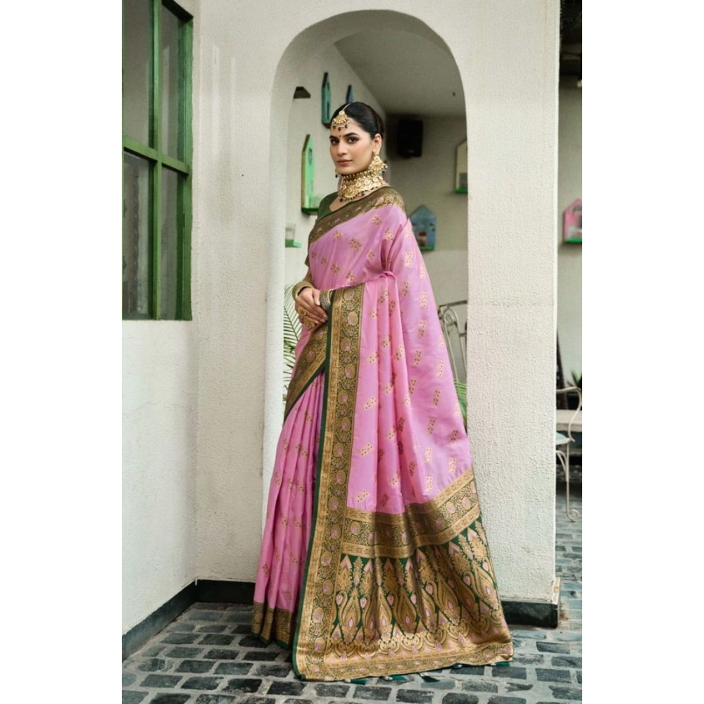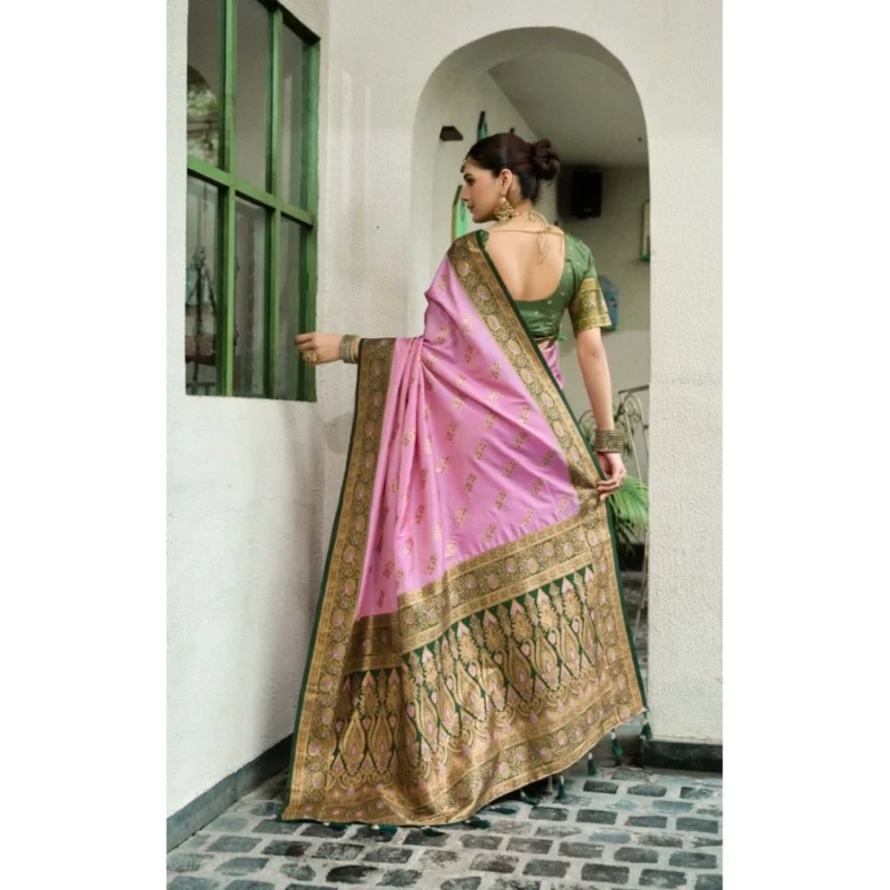 Women's Silk Blend Booti Work Ready to wear Saree With Unstitched Blouse 5.5Mtr (LightPink)