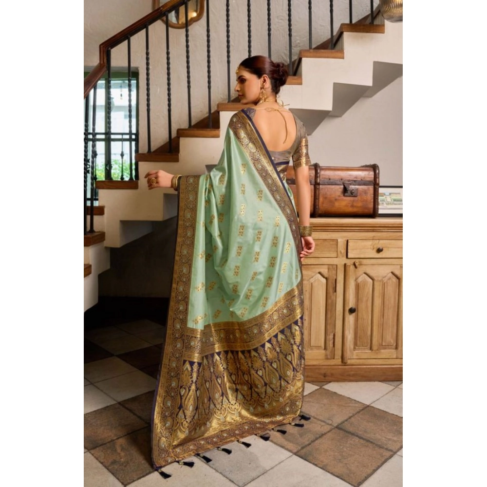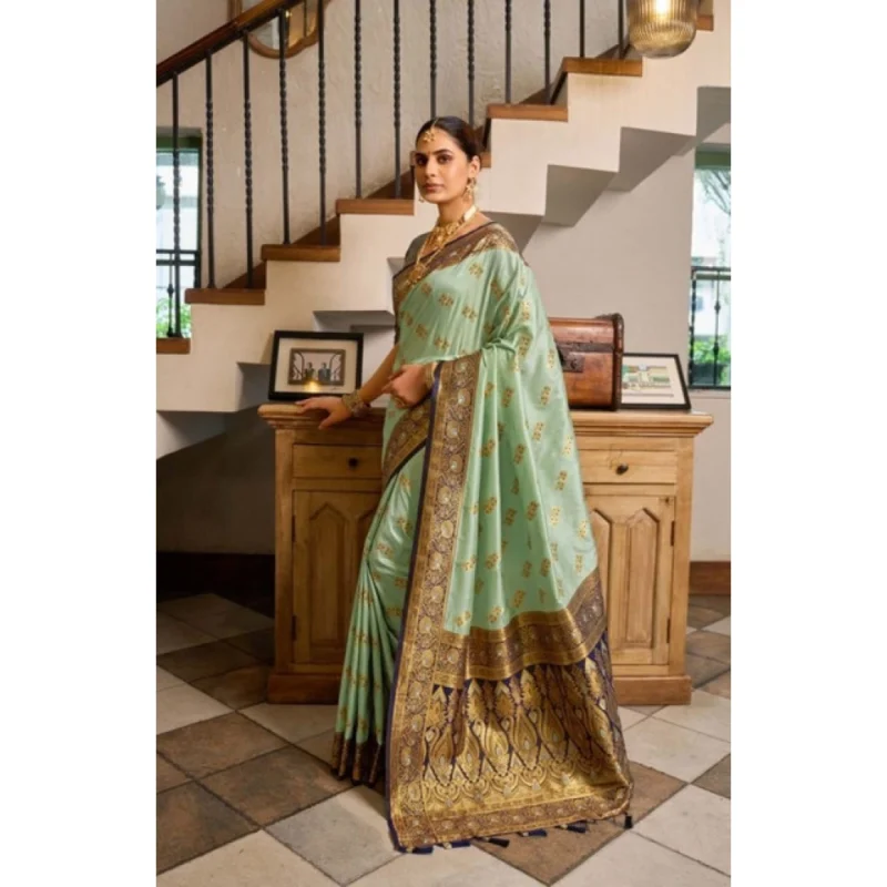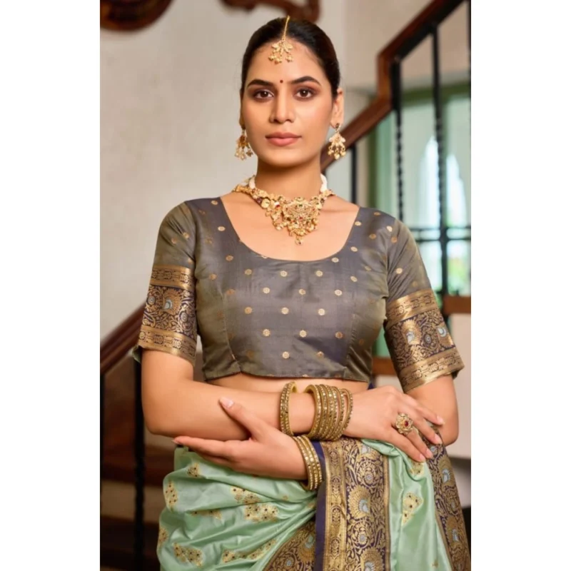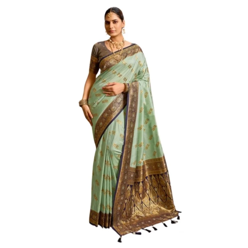 Women’s Silk Blend Booti Work Ready to wear Saree With Unstitched Blouse 5.5Mtr