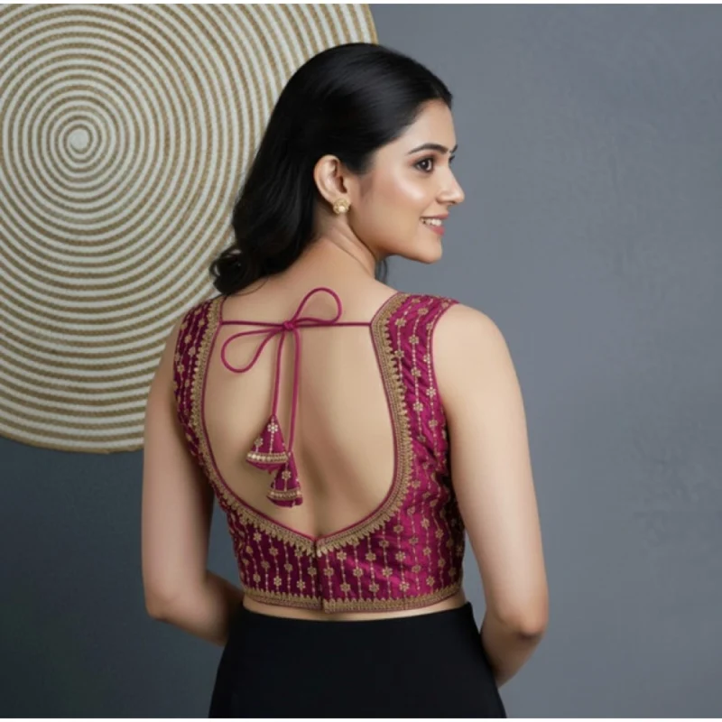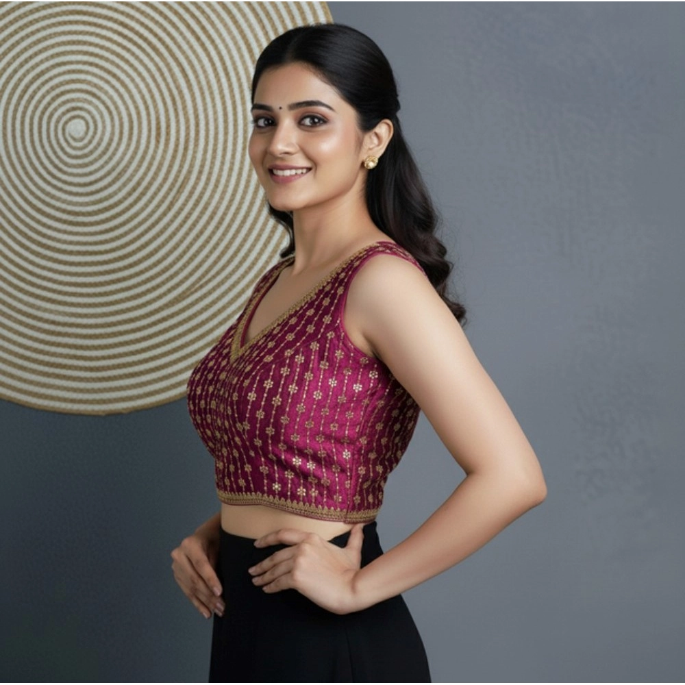 Women’s Silk Blend Embroidered V-Neck Non Padded Blouse