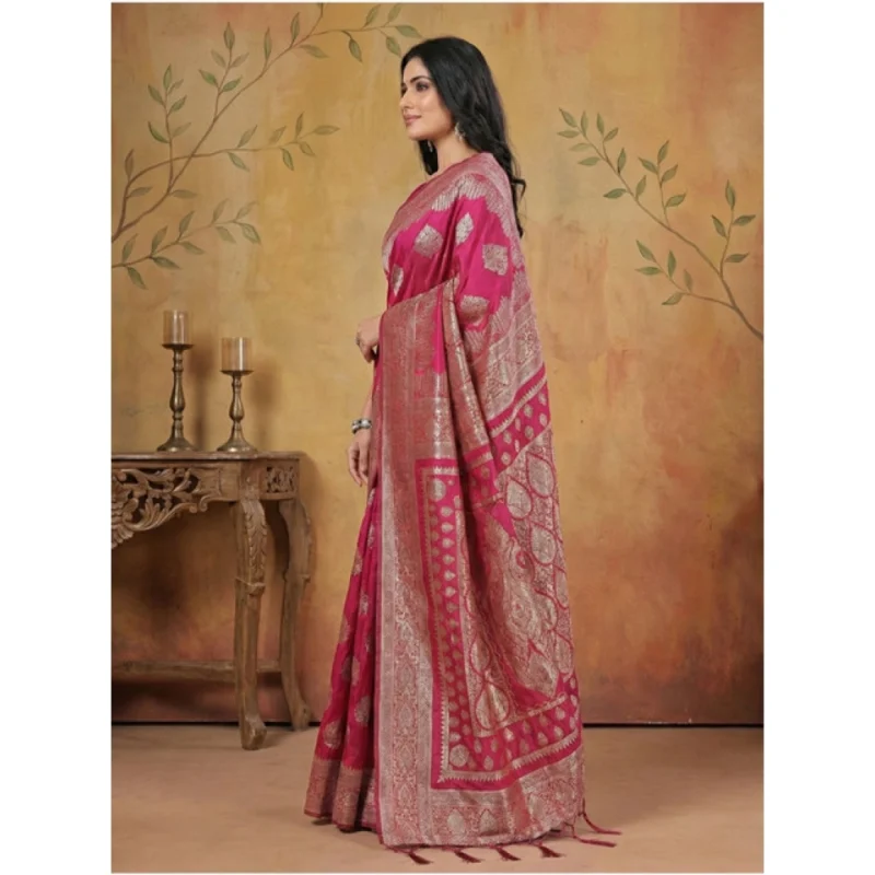 Women's Silk Blend Printed Saree With Unstitched Blouse 5.5Mtr (Magenta)