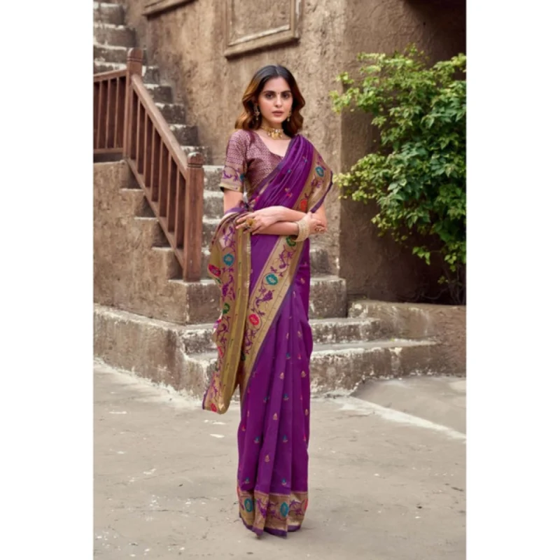 Women’s Silk Blend Woven Saree With Unstitched Blouse 5.5 Mtr (Purple)