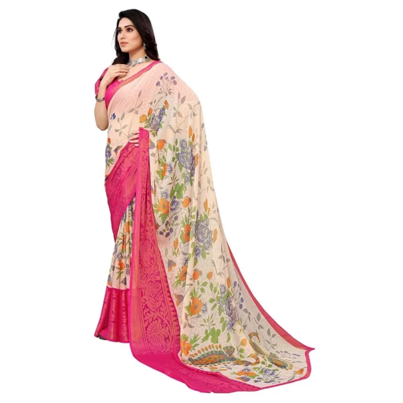 Women’s Viscose Rayon Printed Saree With Unstitched Blouse (Pink)